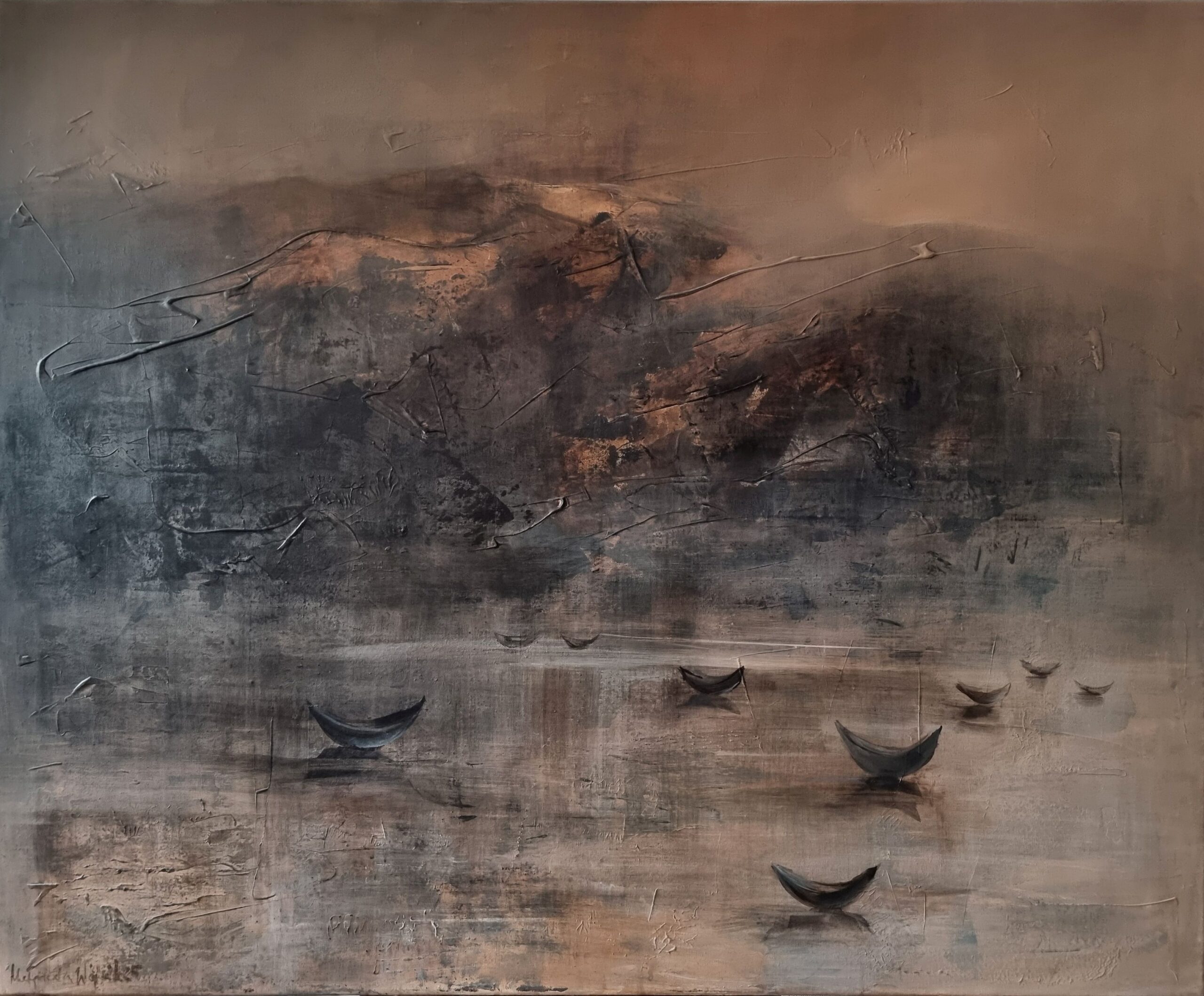176. Małgorzata Wójcik, 2025, cykl ”Odyseusze”, nr11, 90×110 cm, akryl na płótnie, zabezpieczony werniksem, sygn. l.dół i na odwrociu